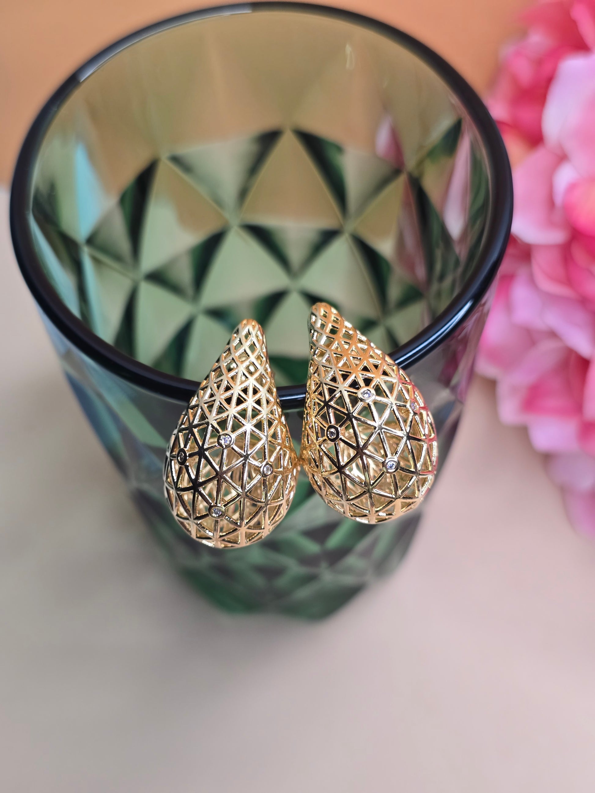 Geometric Teardrop Earrings, 18k Gold plated with Zircons