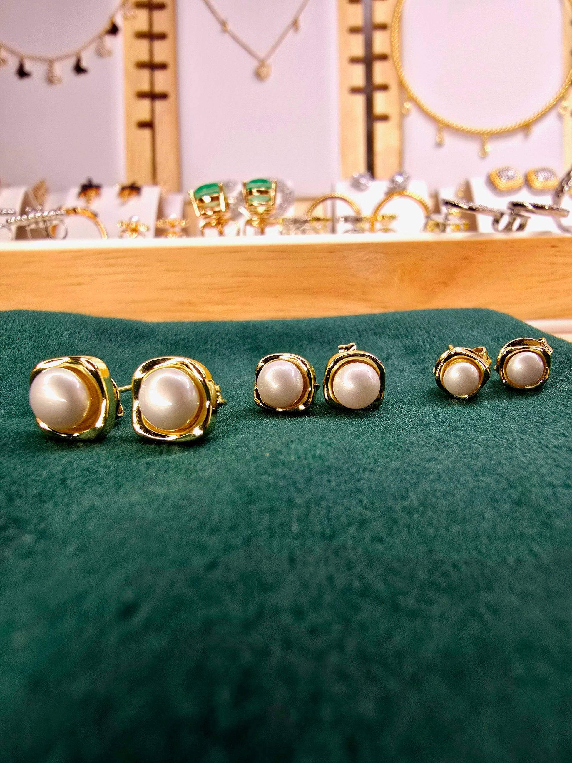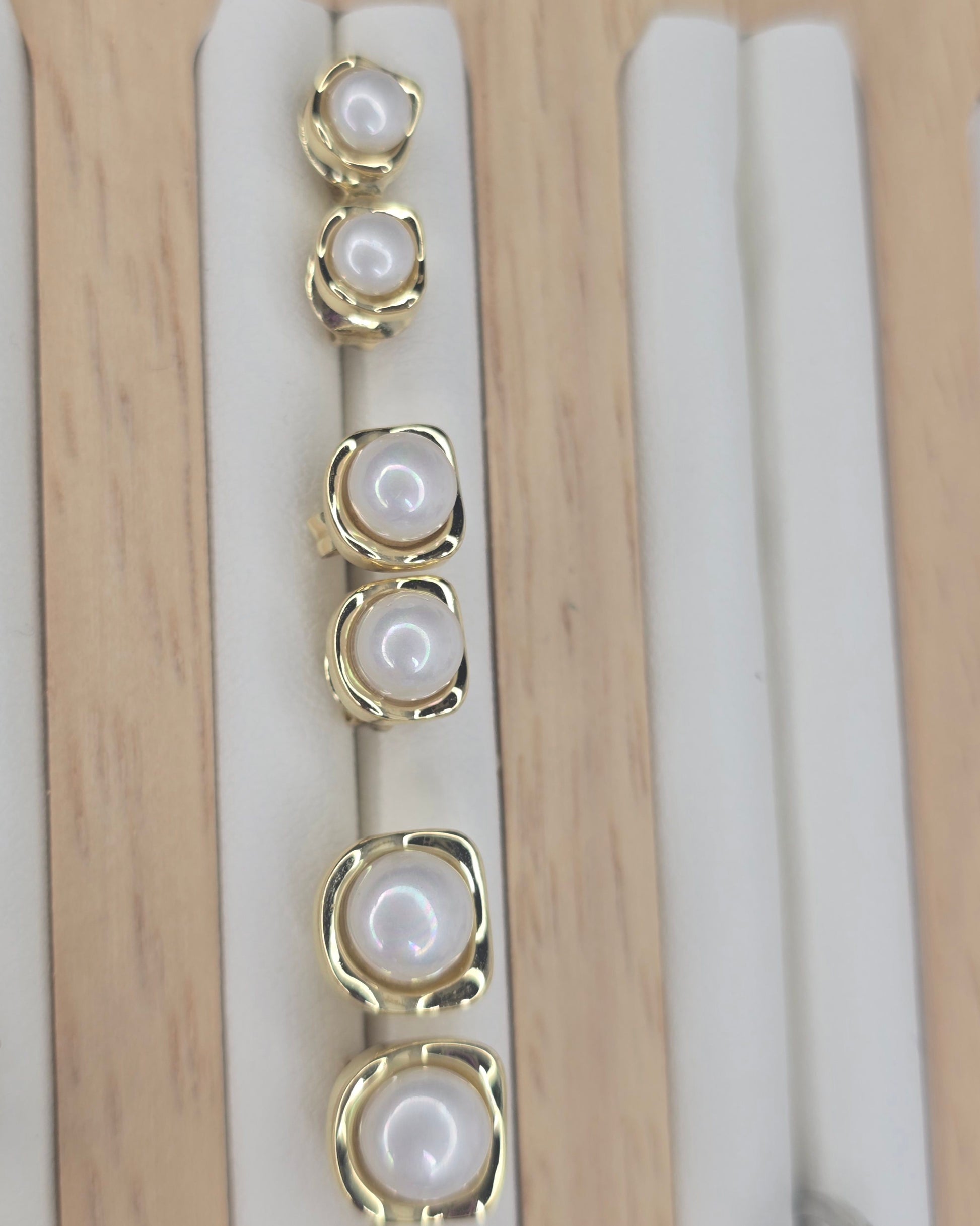 These Golden Pearl Stud Earring Trio is the perfect addition to any jewelry collection. Made with 18k gold plating, these earrings are not only stylish but also versatile. Wear them together for a more dramatic look or individually for a classic and elegant touch. A must-have for any fashion expert.