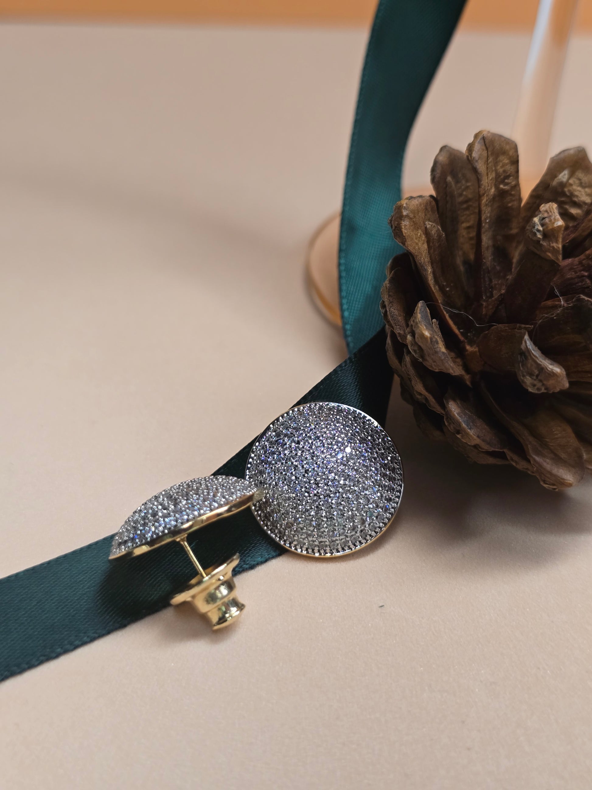 Each earring is meticulously covered with numerous sparkling zircons, creating a dazzling effect that catches the light beautifully. Perfect for both everyday wear and special occasions, these studs add a touch of sophistication and glamour to your look.