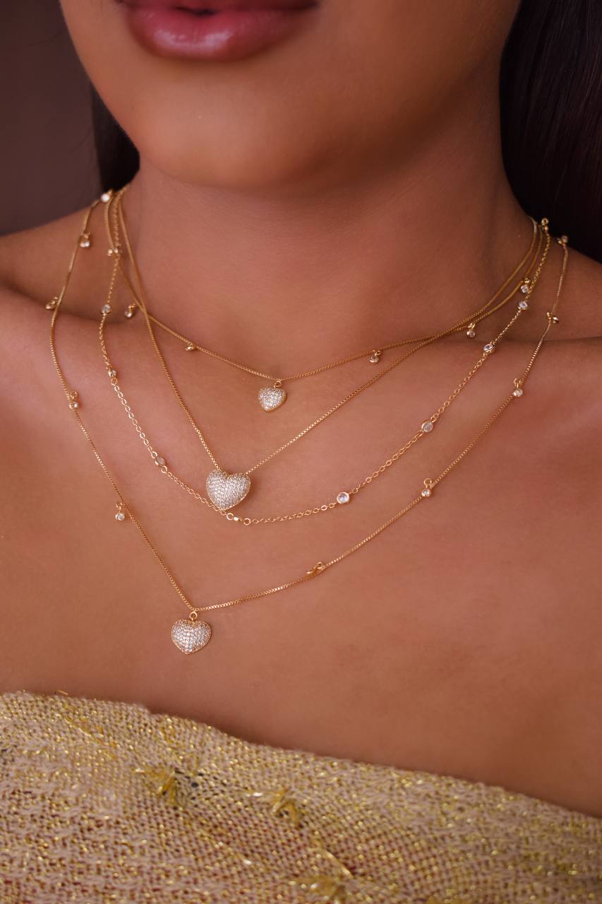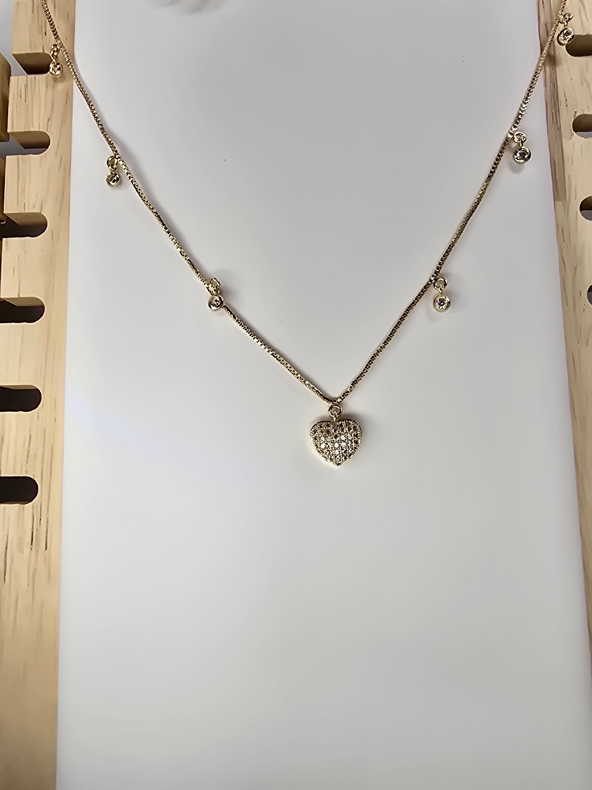 Design Highlights: Features a central heart charm adorned with sparkling zircons, complemented by small dangling zircon charms along the chain. Nacklace has a Gold-plated finishing for durability and shine.
