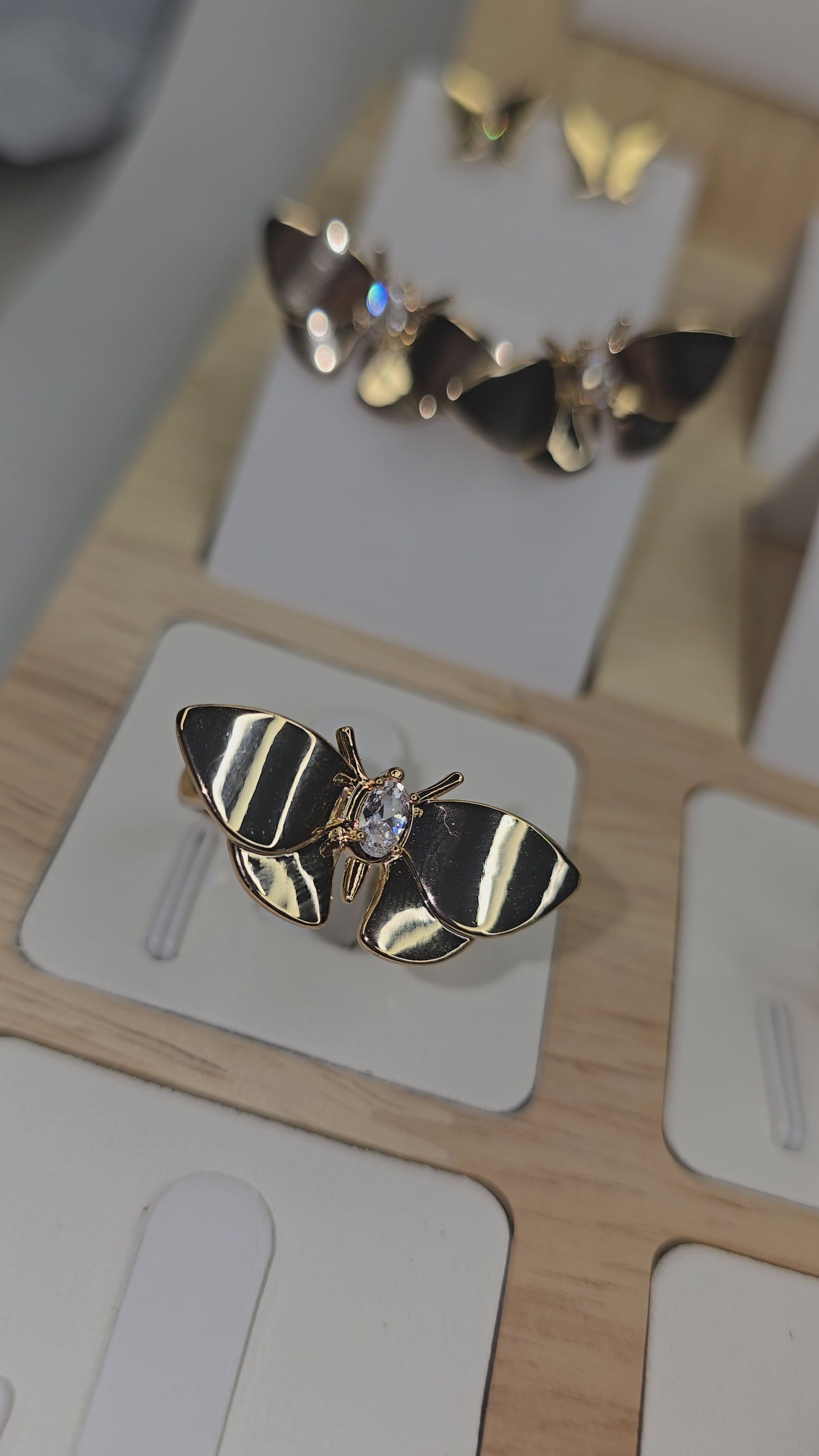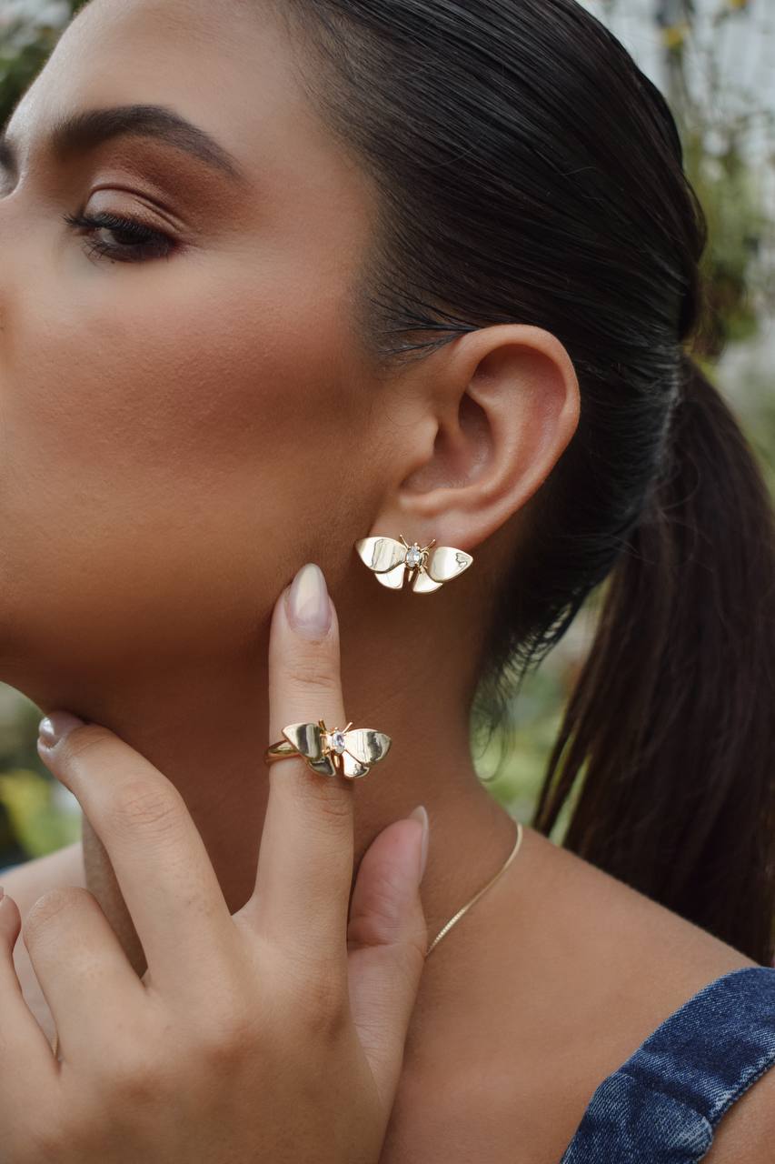 New Beginning Butterfly Earrings and Ring 18k Gold Plaining and Zircon Set