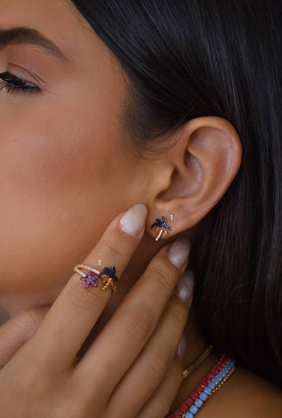Caribbean Vibes Gold plated and Colored Zircon Palm Tree Earring and Ring Set